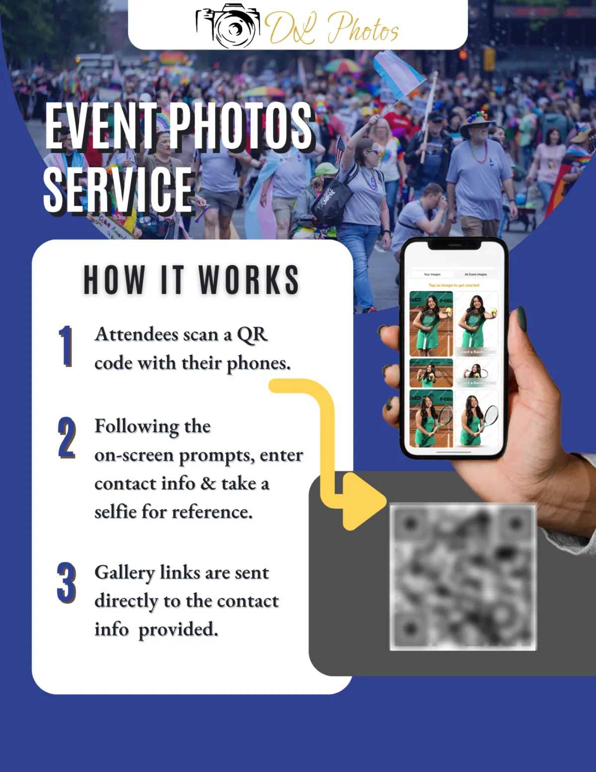 Real-Time Delivery: Guests snap a selfie, scan a QR code, and get their photos instantly.